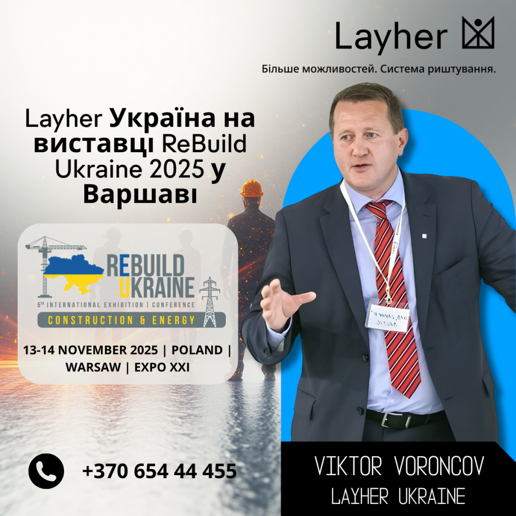Layher Україна братиме участь у виставці ReBuild Ukraine Construction & Energy, яка відбудеться 13–14 листопада 2025 року у Варшаві (EXPO XXI).